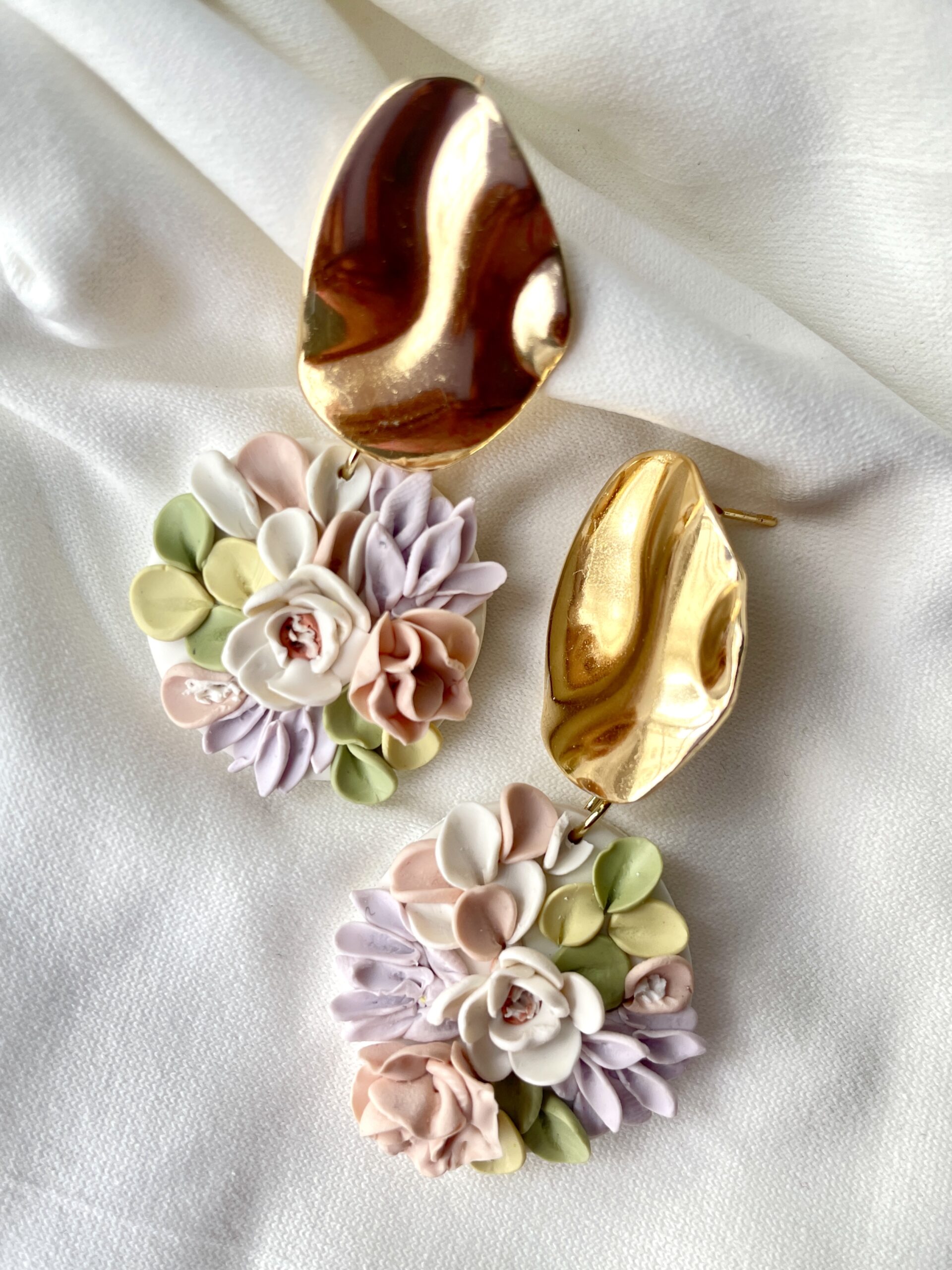 Exclusively handcrafted polymer clay floral earrings, lightweight, 18k gold plated metal, durable